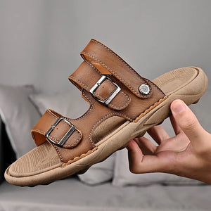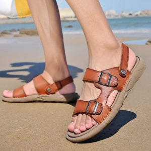 Sandália de Couro Masculina Comfort Fivela Marrom