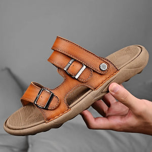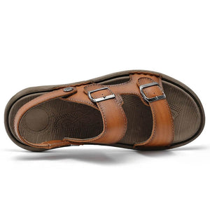Sandália de Couro Masculina Comfort Fivela Cáqui