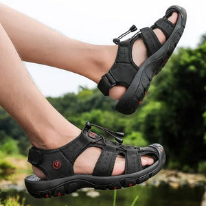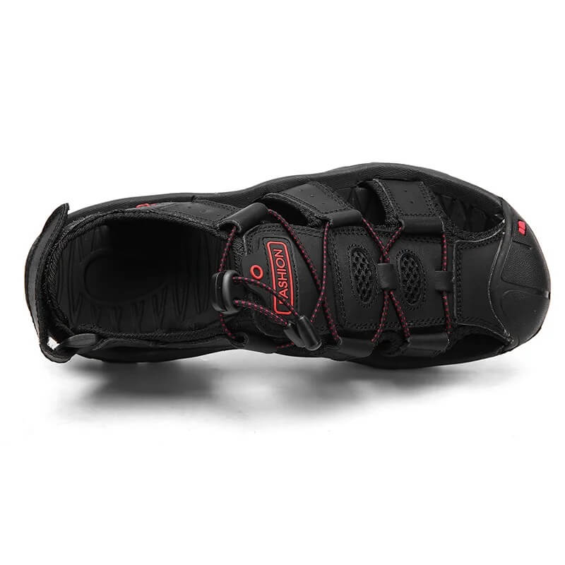 Sandália de Couro Masculina Ortopédica Antiodor Preto